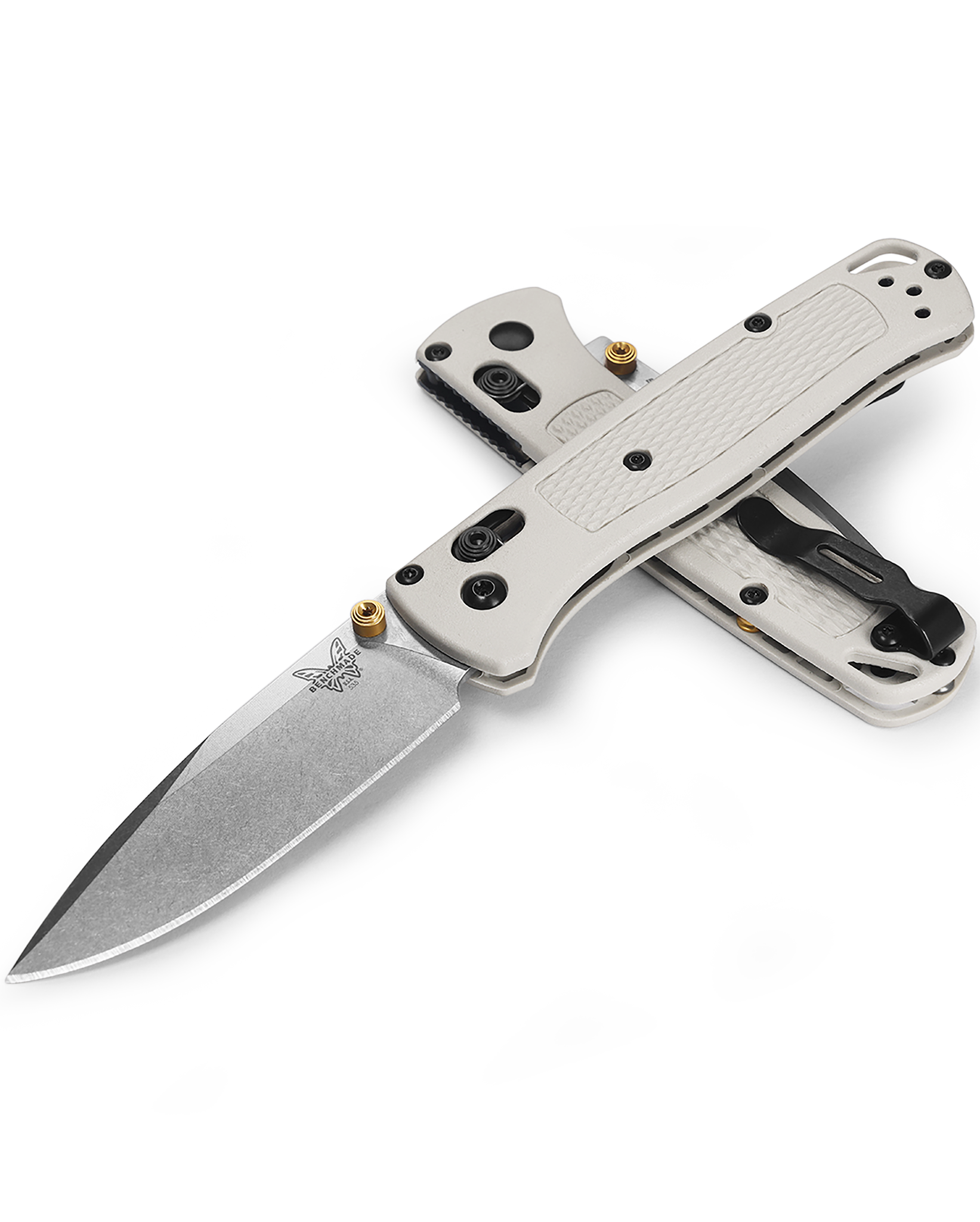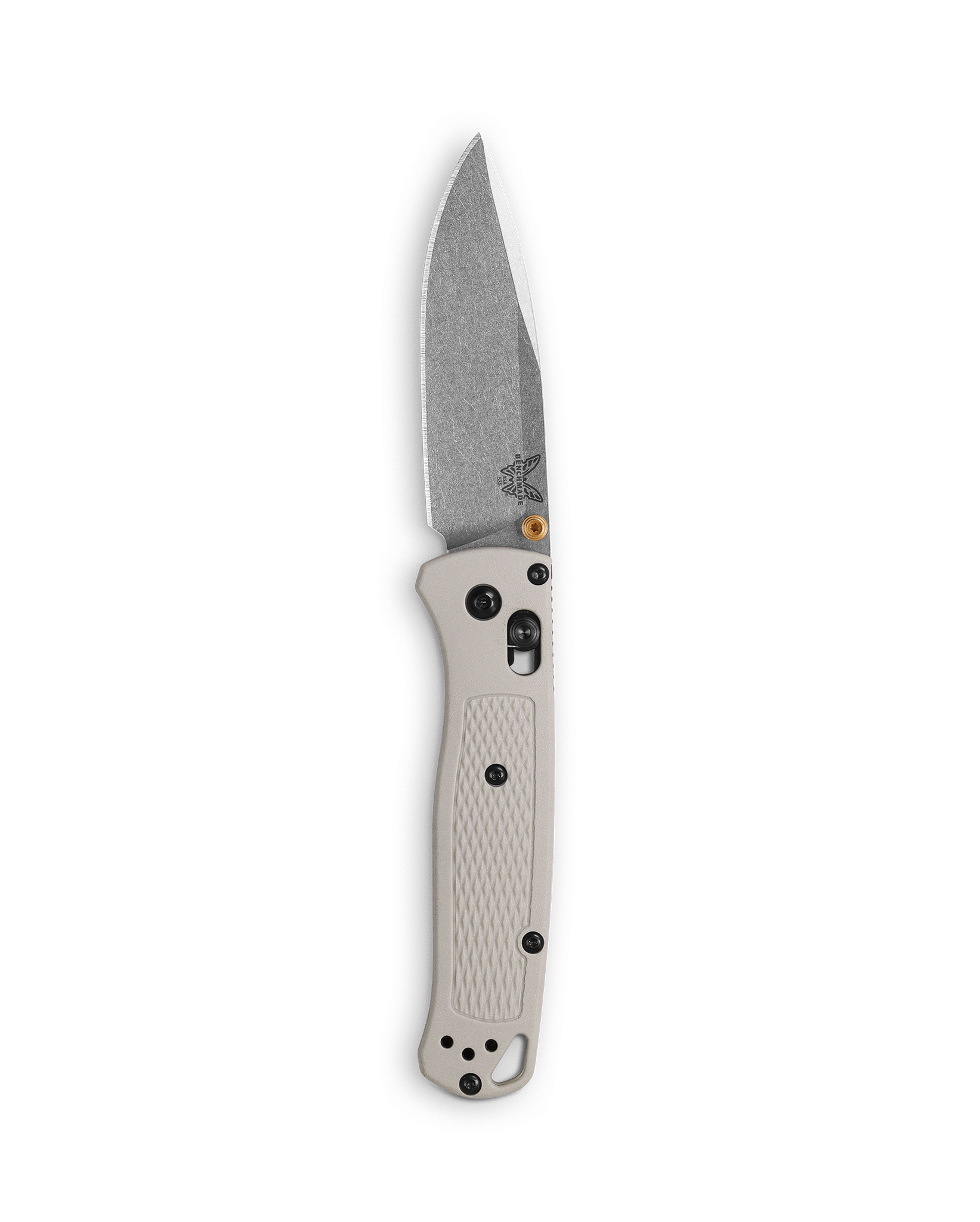 In the years since the 535 Bugout* first hit the market, this slim, lightweight and durable folder has redefined EDC style and versatility from the trail to the workplace and everywhere in-between through all of life's adventures. The 535-12 Bugout® is an instant eye-catcher in easy-to-maintain CPM-S30V premium stainless steel with a Satin finish and earthtone Tan Grivory handle scales with gold anodized thumb stud and backspacers for that pop of color. The tool in your outdoor kit that you can't leave behind. Gear up and bug out.