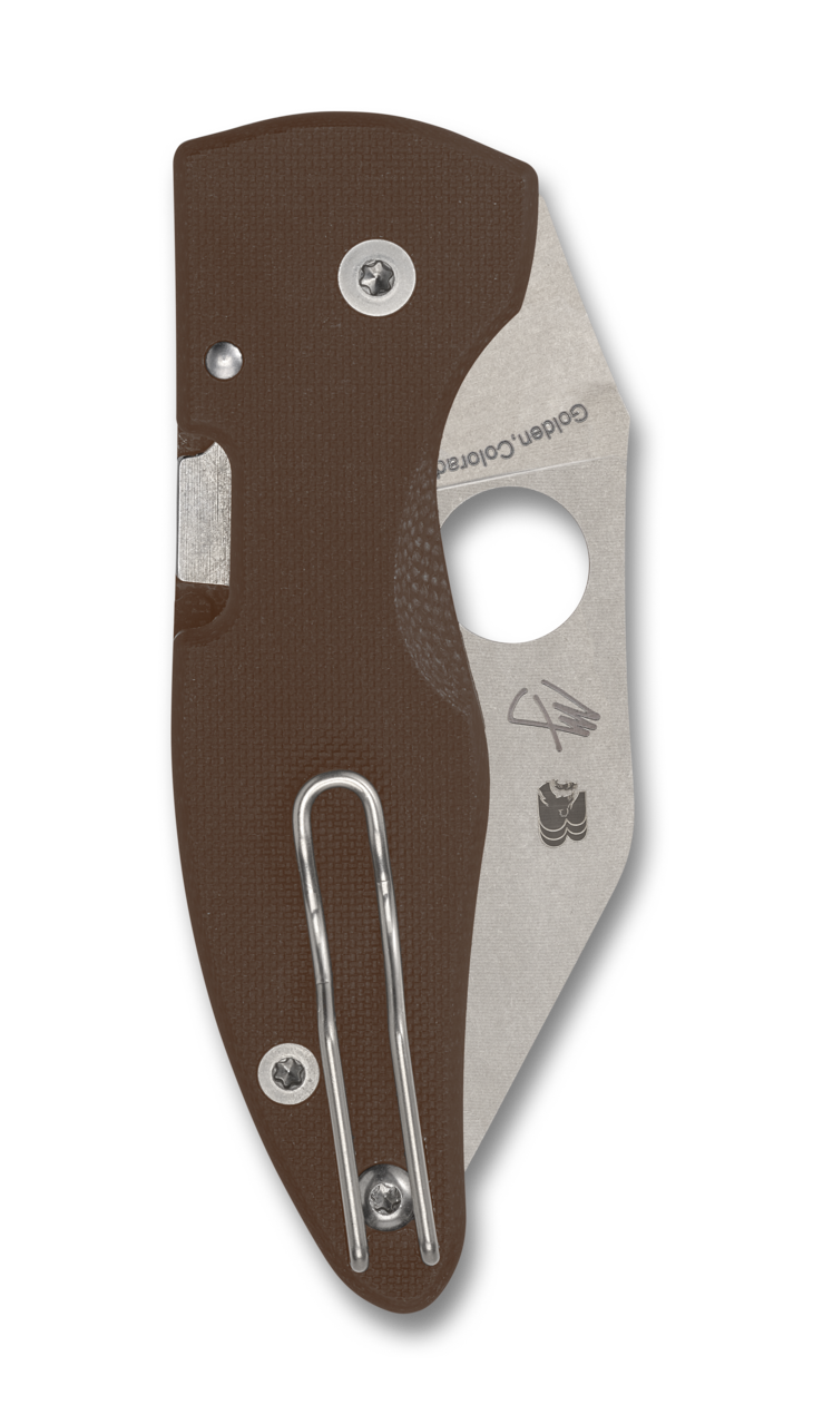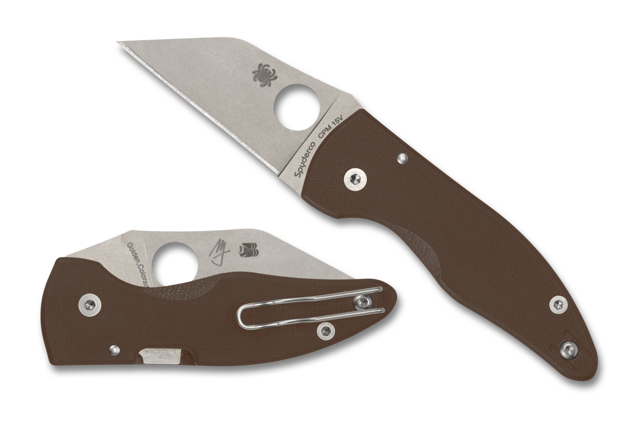 This elite Sprint Run™ expression of the MicroJimbo™ proudly showcases a blade crafted from CPM® 15V®, a remarkable material that offers the highest wear resistance of any cold-work tool steel available today. Containing almost 15 percent vanadium, its advanced alloy composition creates an exceptionally high volume of vanadium carbides in its microstructure. In knife blades, this translates to unparalleled cutting performance and edge retention. Spyderco’s limited-edition CPM 15V knives are further enhanced by a specialized heat-treating protocol developed by acclaimed custom knifemaker Shawn Houston. This Sprint Run MicroJimbo faithfully includes all the proven elements of this design, including a high-strength Compression Lock® mechanism and a reversible deep-pocket wire clip. To clearly distinguish it as a member of our CPM 15V family, it also features brown peel-ply-textured G-10 handle scales and Shawn Houston’s “Triple B” logo laser engraved on the reverse side of the full-flat-ground blade.